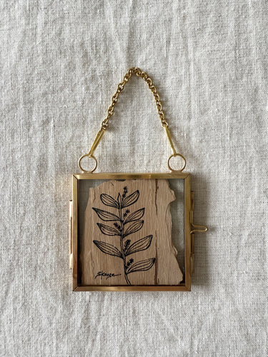 Each piece of bark is carefully chosen to suit it's individual frame. Focussing on composition, balance and texture. The artwork is then created to suit the shape of the bark and personally signed in archival ink. These works are created with the intention of gently re-connecting you to Mother Earth.